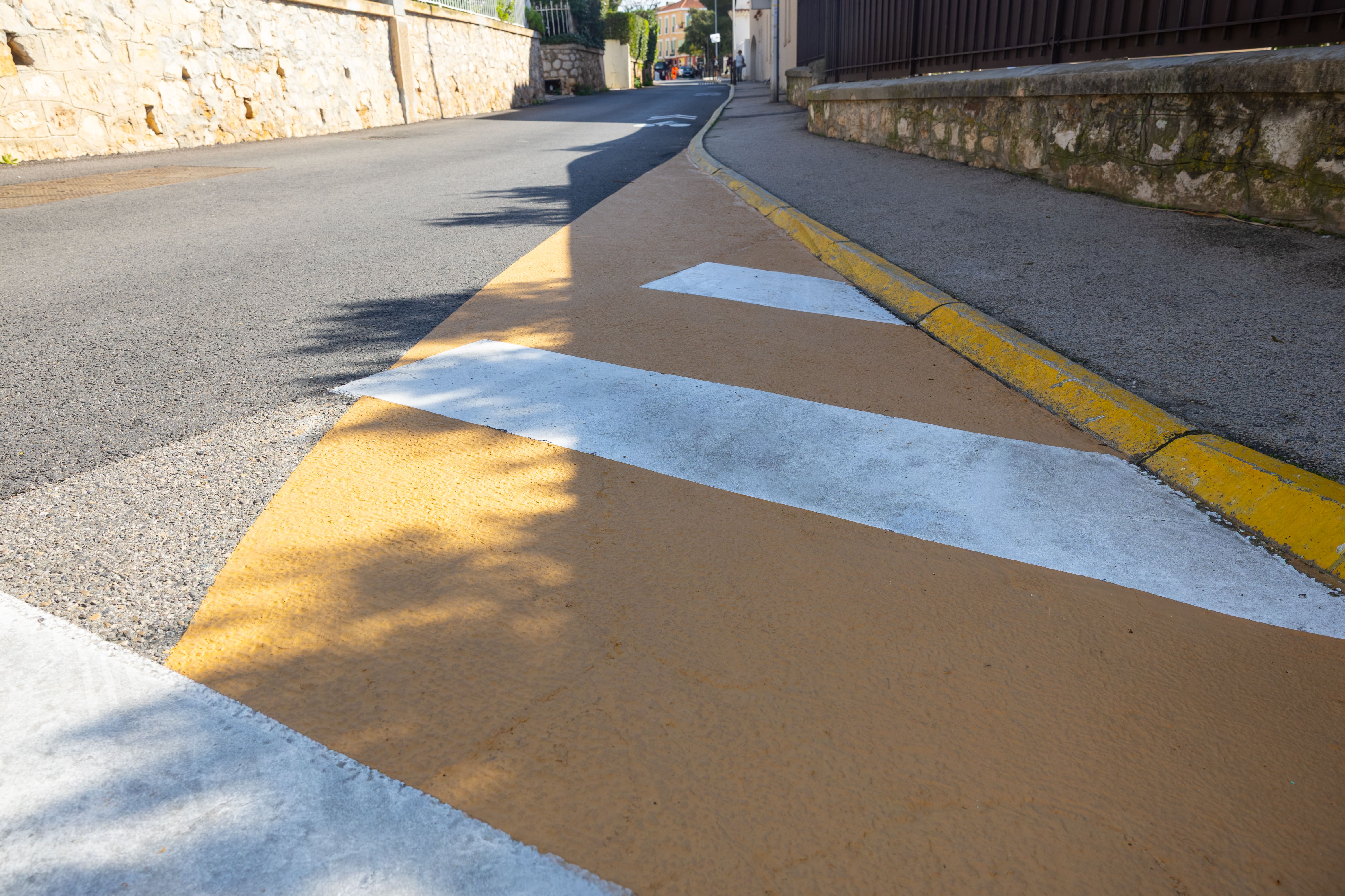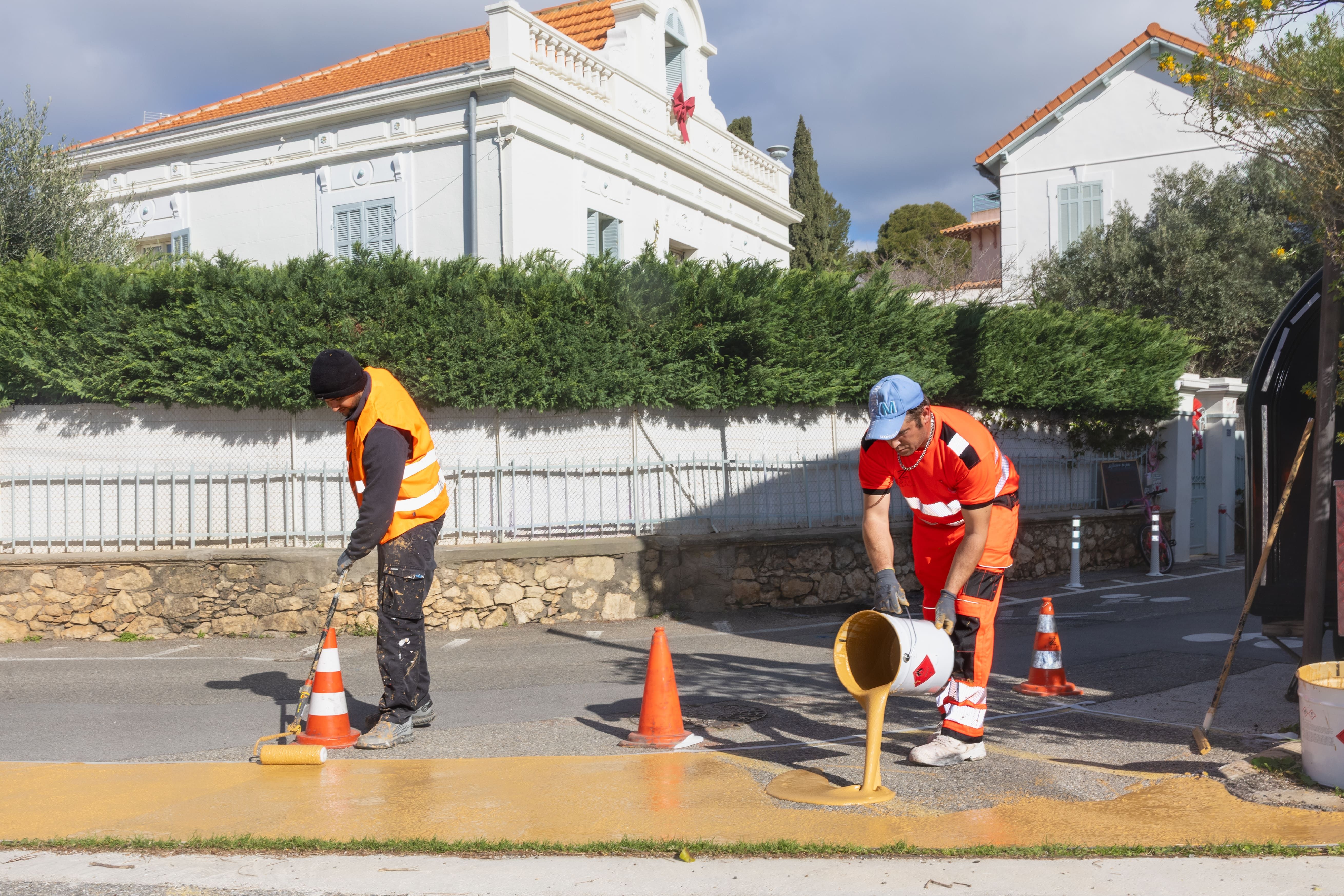 Nous avons réalisé une campagne de marquage au sol pour tous les passages piétons d'une ville. Nous avons refait environ 200 passages piétons et une cinquantaine de marquages au sol de stop. Cela mobilise une équipe de deux personnes pendant environ un mois. Nous travaillons en journée et de nuit selon les zones. Dans un lotissement, nous pouvons travailler facilement en journée. Sur des axes plus fréquentés de la ville, nous sommes obligés de travailler de nuit pour qu'il y ait moins de personnes et que nous puissions baliser plus facilement.